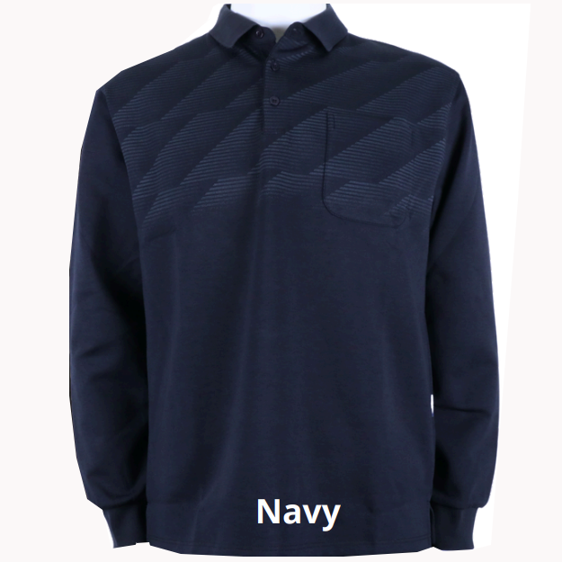 Chandail à col polo à boutons à manches longues avec poche en LIQUIDATION