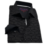 Chemise à manches longues et aux poignets à revers noir uni en PROMOTION