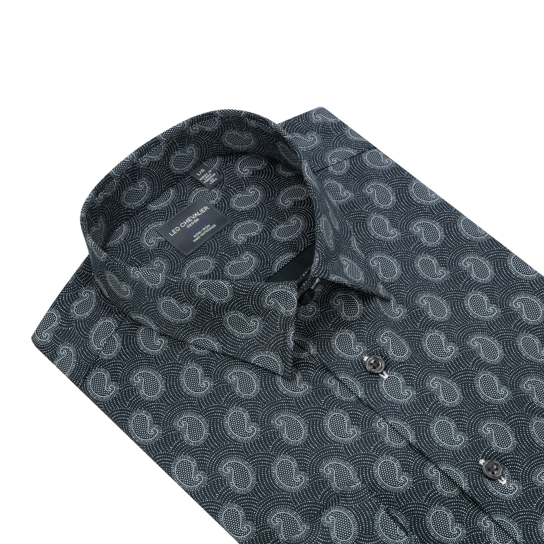 Chemise à manches longues entretien facile et aux poignets à revers imprimés en LIQUIDATION