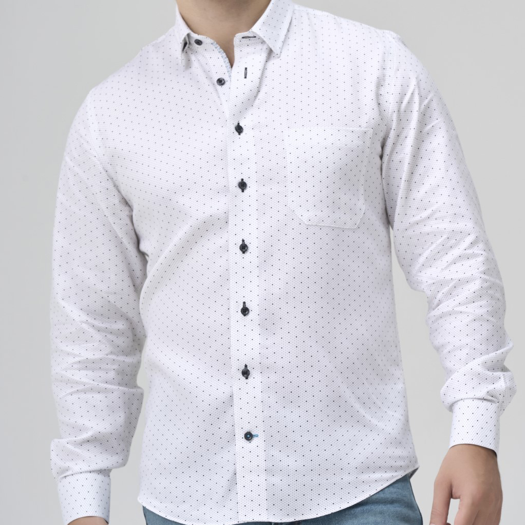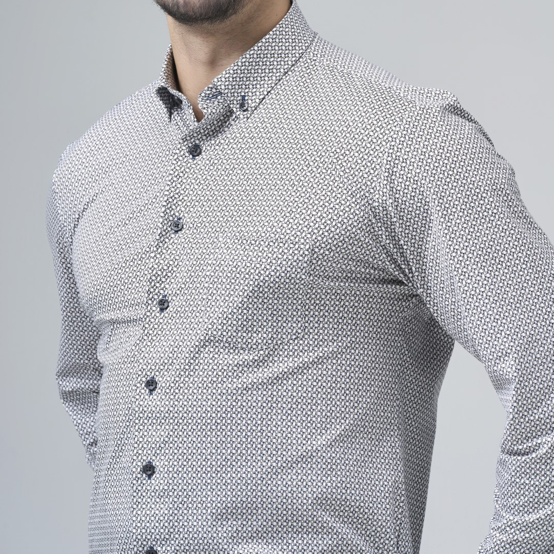 Chemise à manches longues et aux poignets à revers imprimésen PROMOTION (photo à titre informatif car la chemise est à manches courtes)