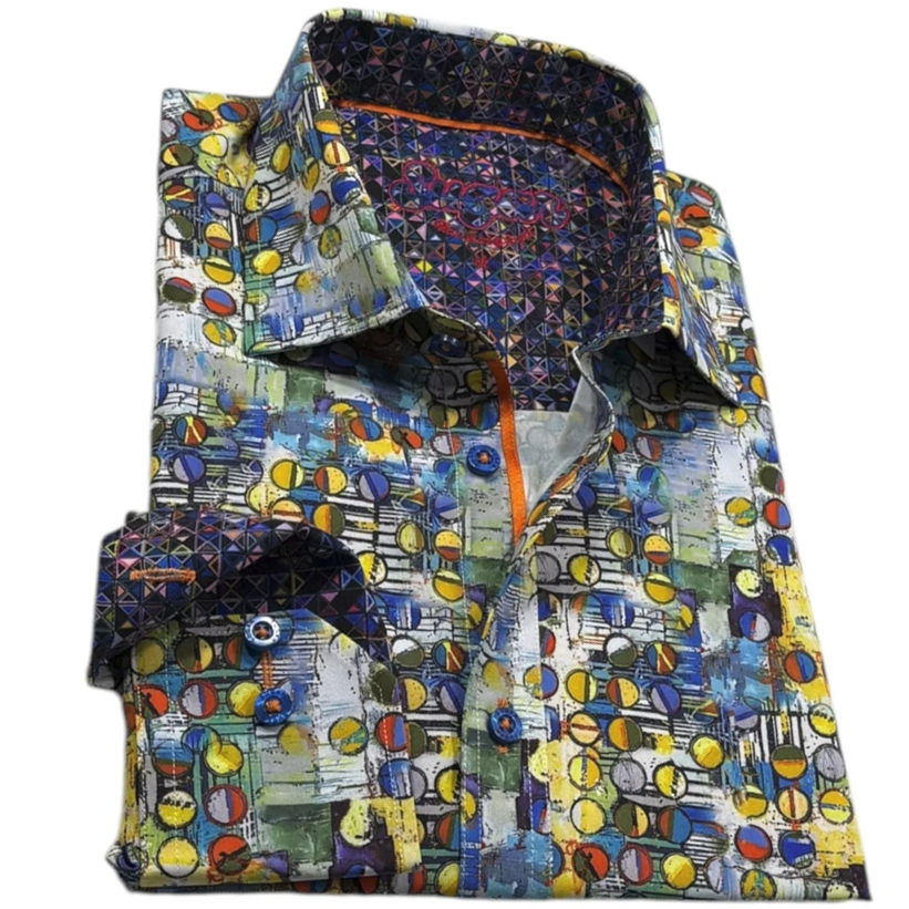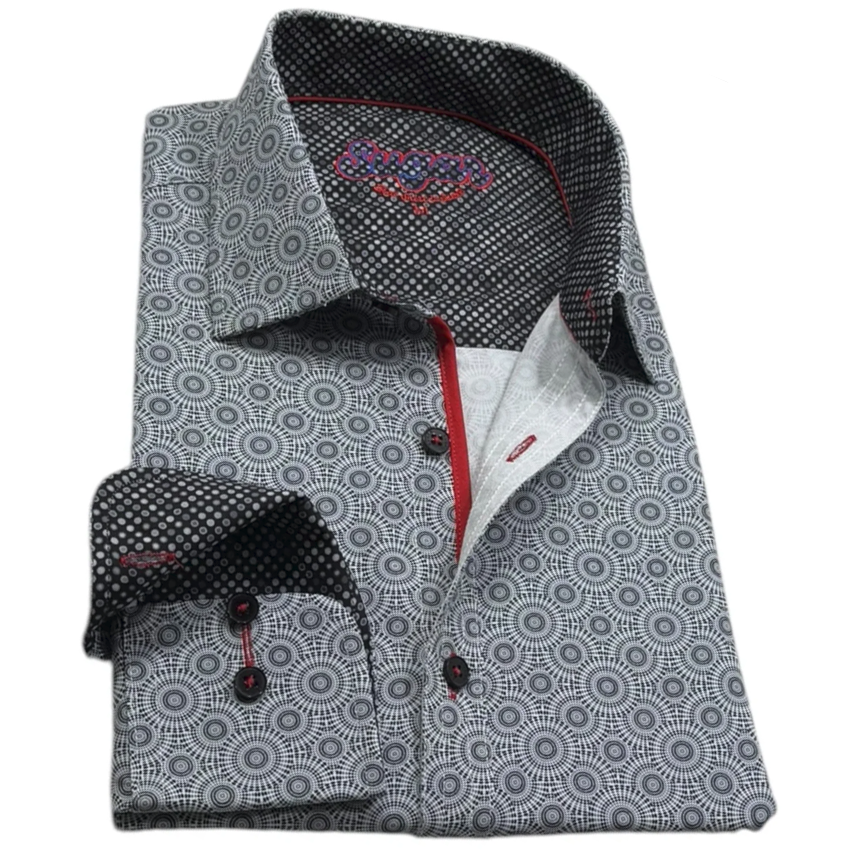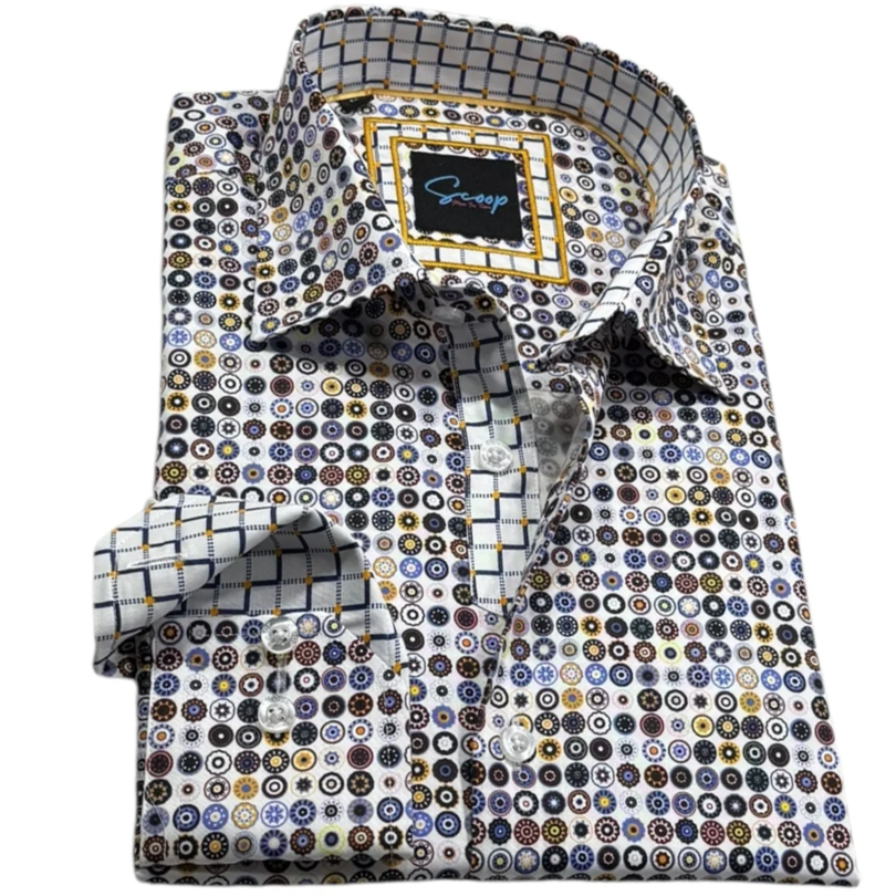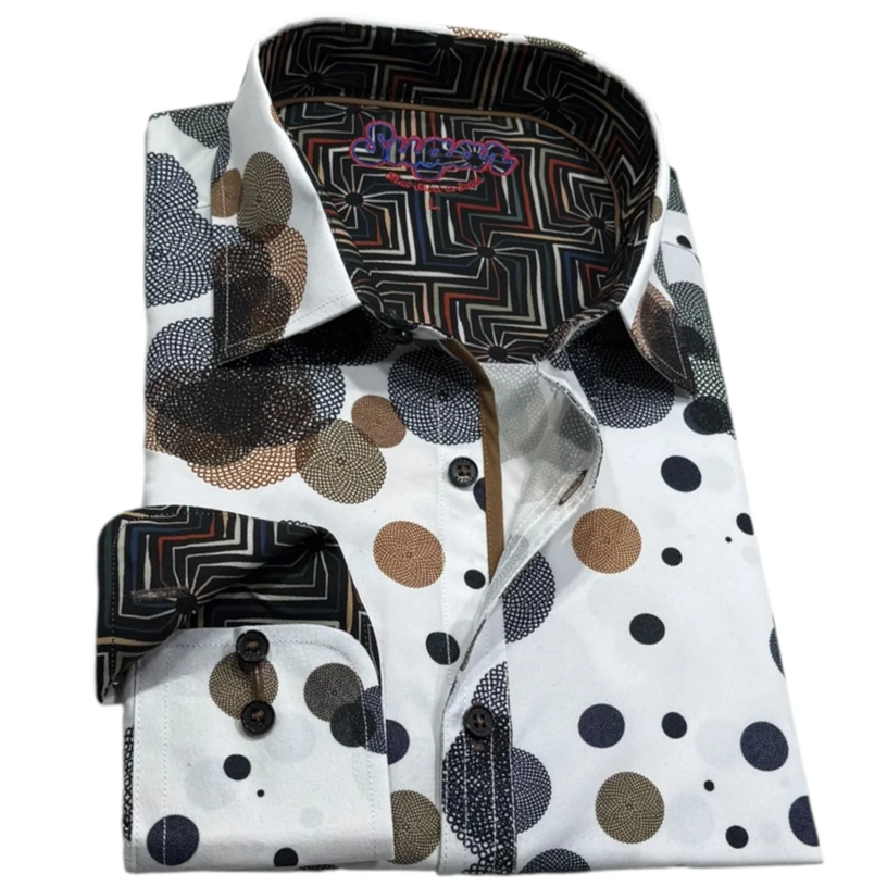 Chemise à manches longues aux poignets à revers blancs à imprimée de cercles en 94% Polyester, 6% Spandex