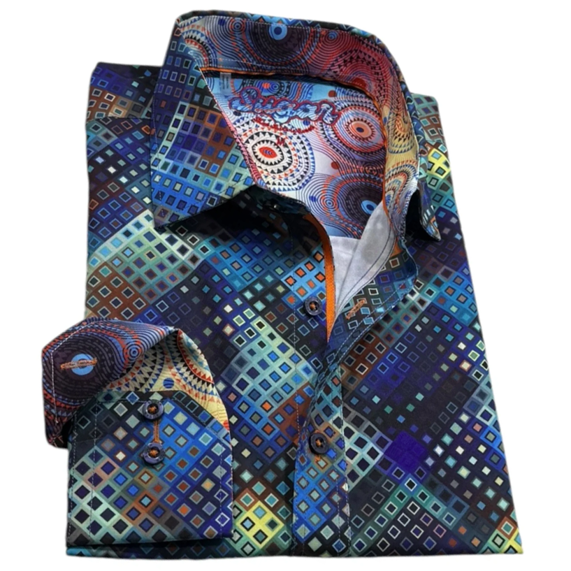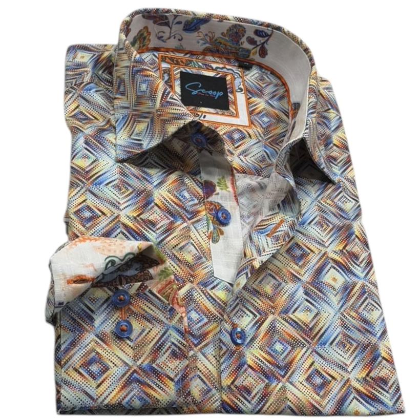 Chemise à manches longues aux poignets à revers imprimés à imprimée géométrique en 94% Polyester, 6% Spandex