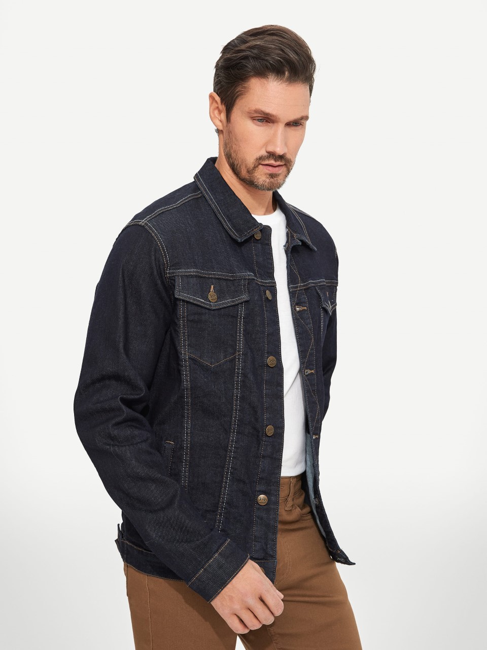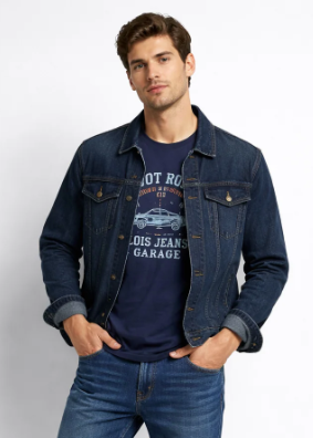 Surchemise en jeans extensible, peut se porter seul ou par dessus un chandail ou une autre chemise.