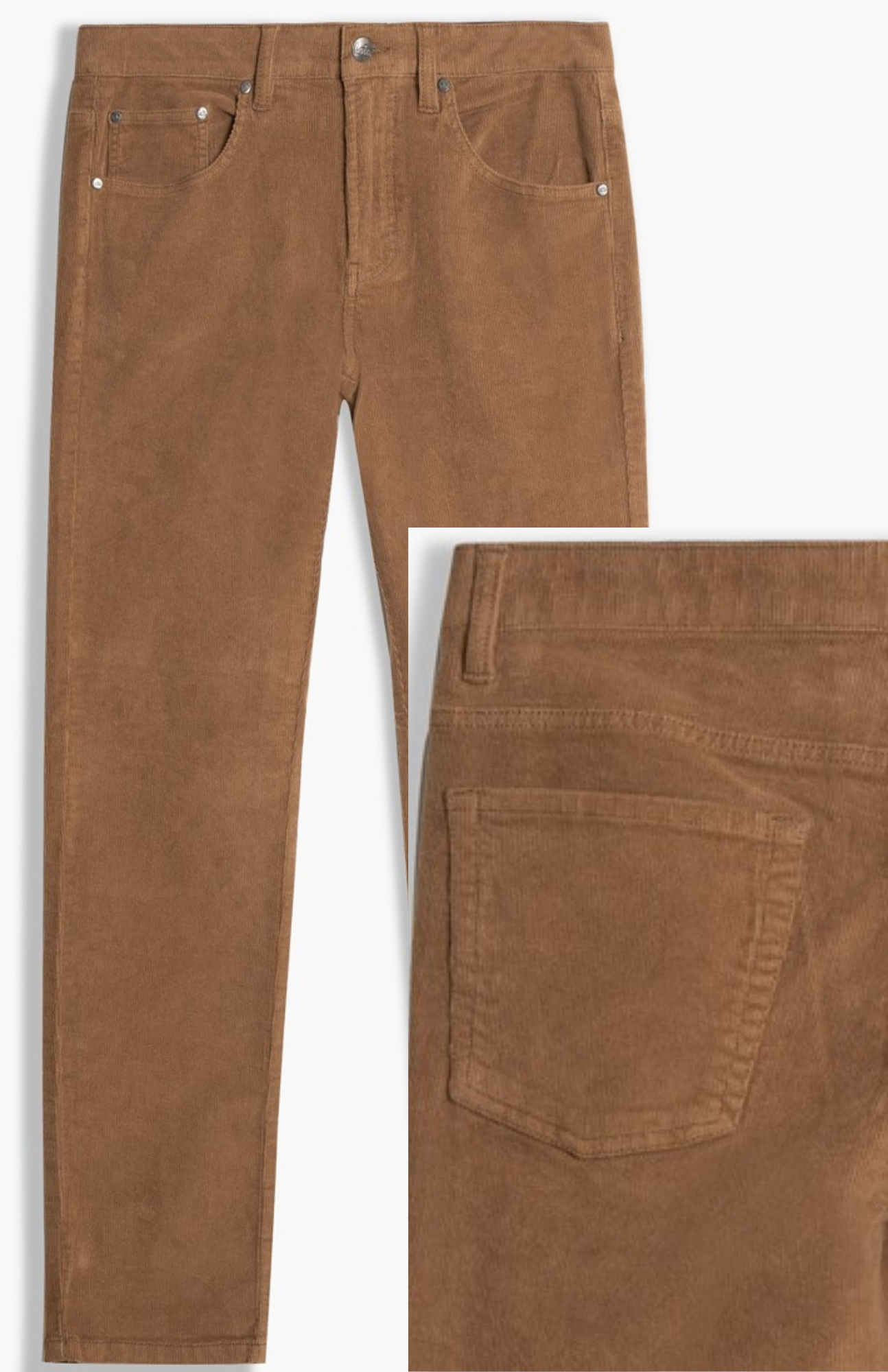 Pantalon sport et habillé extensible, coupe régulière et poches devant et poches arrière piquées comme un jeans.
